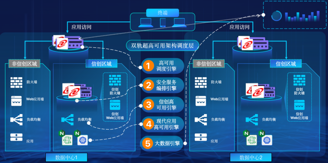 leyu.乐鱼在企业面临自主创新IT基础重构过程中,推出的全新架构双轨超高可用架构(简称DTMAA),在双活数据中心的分区调度基础上,添加每个数据中心内信创域和非信创域的分域调度,来实现分区分域协同的多活双轨超高可用。